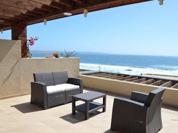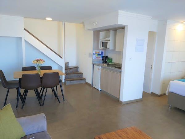 Departamento de dos ambientes: Primer piso cama matrimonial baño en suite, living comedor, cocina equipada. Terraza vista al mar. Segundo Piso Dormitorio Matrimonial Baño en suite, Balcón vista al mar.
