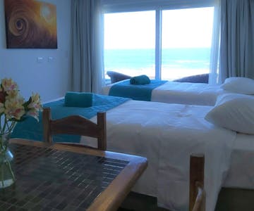 Departamento uno o dos ambientes, dormitorio cama matrimonial, baño en suite, living comedor, cocina equipada. Terraza o balcón vista al mar.