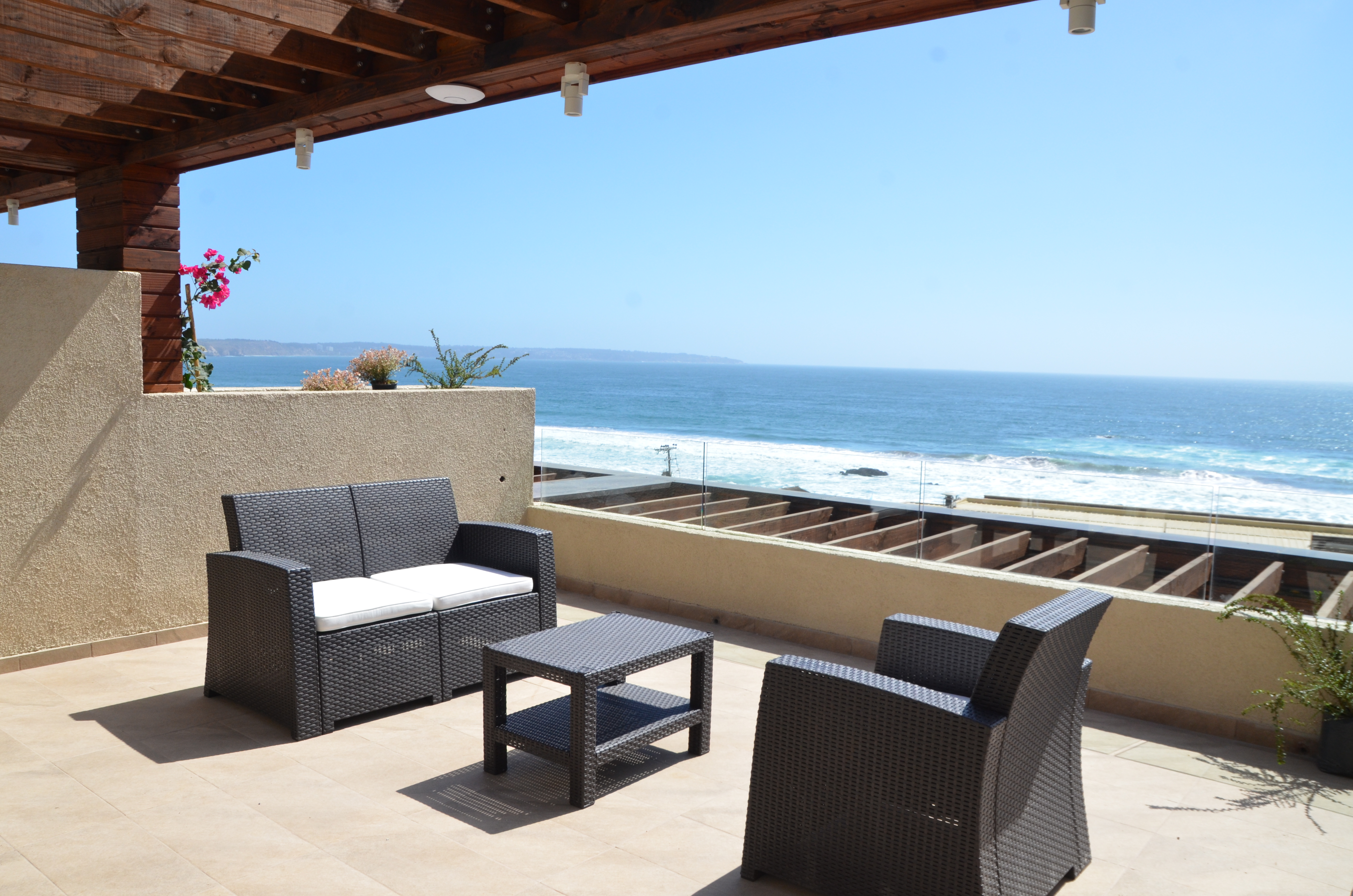 Departamento de dos ambientes: Primer piso cama matrimonial baño en suite, living comedor, cocina equipada. Terraza vista al mar. Segundo Piso Dormitorio Matrimonial Baño en suite, Balcón vista al mar.